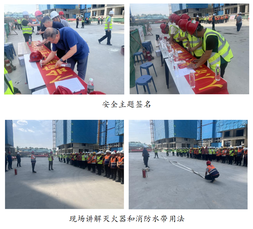 活动期间,大家积极参与安全主题签名和主题宣誓,讲解员现场讲解消防水带和灭火器的用法,解答安全生产相关知识,并开展了消防实战演练。乐鱼网页版登录入口-乐鱼(中国)分管安全生产的总经理助理黄志澎作重要讲话,强调了安全生产的重要性,要求各单位扎实做好今年防汛工作,并为一线工人发放防暑降温药品和安全知识手册200套。