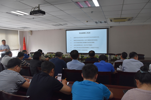 5月24日下午,根据乐鱼网页版登录入口-乐鱼(中国)2019年度普法培训计划要求,为大力宣传学习新通过的《最高人民法院关于审理建设工程施工合同纠纷案件适用法律问题的解释(二)》 (以下简称“解释二”),乐鱼网页版登录入口-乐鱼(中国)在25楼会议室开展了《“建设工程施工合同法律适用”解读暨职工普法工作专题会议》。乐鱼网页版登录入口-乐鱼(中国)60多名员工参加了本次培训。