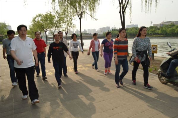 4月28日下午4:00,斜阳浓浓,微风徐徐,在乐鱼网页版登录入口-乐鱼(中国)领导秦广远、付立文等同志的带领下,近40名员工在楼下准时集合,排成整齐的健步走队伍,挥舞着“郑州市建设投资集团”的旗帜,精神抖擞地沿着如意湖畔阔步前行,在运动中体验健康和快乐。